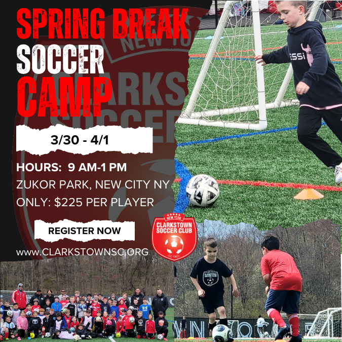 The Clarkstown Soccer Club Spring Break Soccer camp is the perfect way to have fun with friends and stay active when there’s no school! For Clarkstown Soccer Club and non-Clarkstown players born from 2017 to 2009. Players will be broken up by age/grade, gender and skill level.